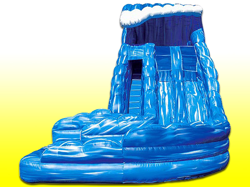 The Tidal Wave Water Slide is a gorgeous-looking all blue marble water slide with a crashing wave motif on the top of the unit. Its dual lane design, complete with a curved sliding lanes and an inflatable pool at the bottom will make the delight of kids and grown-ups alike!