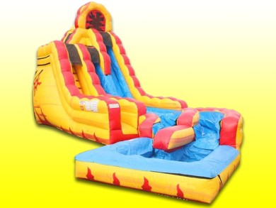 This summer get ready to climb into the excitement of the Fire & Water slide!. The unique design of this unit offers two separate sliding lanes one taller than the other, so players can choose from 2 different slide heights to slide from. Both lanes curve at the end and drop to the inflated pool at the end. This slide is sure to give hours of refreshing fun to all-ages!