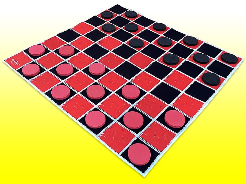 😎 GIANT CHECKER GAME - Play your favorite black and red tabletop game in a HUGE new way! King your checkers on this large 4ft x 4ft canvas checkerboard with a distressed and cool retro style.