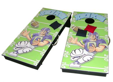 This exciting bean bag game can be enjoyed by young and old alike. Players throw bean bags towards the round hole in the wooden target board. Score three points for landing in the hole, and one point for landing on the board. The player or team with the most points wins!