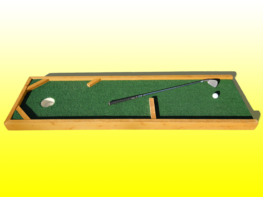 The Mini Golf / Pool Golf table games can be played on the ground with a golf putter, or as a raised table game with a pool cue.