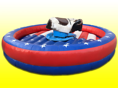 The Mechanical Bull ride is a true crowd pleaser. Everyone that gets on has a good time! Our Mechanical Bull is outfitted for the safety of every rider. The bull has a soft head, soft foam bull horns, and an inflatable mat surrounding it. So no matter which way you fall, you land safely and softly. The mechanical bull rental includes an attendant to operate the control panel for your desired times so all you have to do is place an order.