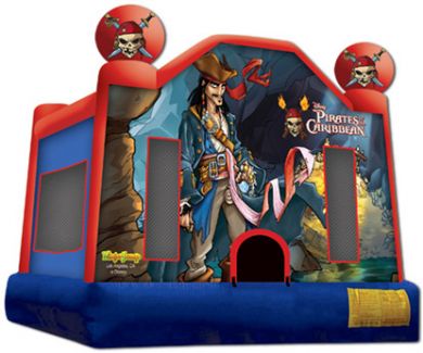 This bouce house brings buccaneer adventures to any swashbuckling affair. Kids will fantasize about sailing the high seas to find buried treasure with pirate Captain Jack Sparrow on the Black Pearl as they bounce around in this Pirates of the Caribbean themed bounce house rental.