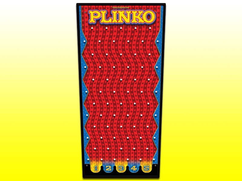 Another Carnival Favorite Classic game. Drop the discs through the top of the game board and watch them fall through the pegs until the land on one of the 5 pockets at the bottom.