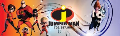 This Banner is Free with any rental of our NEW SPECIAL 3 in 1 Banner Bounce House design. All of our Banner Bounce Houses have small obstacles inside and a basket ball hoop allowing children and adults to have a blast! So for just a few dollars more, try one of our 3 in 1 bounce houses rather than the same old Jumper from other parties! Remember Jumper Man is Las Vegas' #1 in selection for party rentals. We have over 30 different banners, so please call if the one you want is not here! Many of our images are still coming! And don’t forget...WE ARE NOW PARK INSURED!